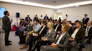 In Rotterdam, the delegates gained a first-hand impression of green hydrogen import infrastructure developments in Europe. Mr. Han Feenstra, Senior Policy Officer at the Ministry of Economic Affairs and Climate Policy from the Government of Netherlands and Mr. Mark-Simon Benjamins, Business Manager at the Port of Rotterdam, spoke on the Dutch Green Hydrogen Strategy and the hydrogen developments at the Port. The subsequent tour around the Port of Rotterdam included stops at ammonia terminals of Koole, OCI and Gunvor, a visit to an offshore-wind transformer station for green hydrogen production and a stop at the “Conversion Park” development site including electrolyser projects by Shell, BP and Air Liquide. The tour ended with an impression of SIF Offshore wind foundation manufacturing and storage site with impression on GE Haliade-X 14 MW wind turbine.
