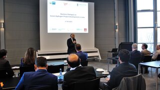 On the occasion of the visit of the Indian Ambassador to Germany, H.E. Harish Parvathaneni to Hannover, the Indo-German Energy Forum Support Office (IGEF-SO) in coorperation with the Indo-German Chamber of Commerce, the Embassy of India in Berlin and energiewaechter organised a dialogue event on “Decarbonisation of India’s Industry – Green Hydrogen Project Development in India”. H.E. Harish Parvathaneni presented the National Green Hydrogen Mission of India and spoke about its importance for energy security and tackling the climate crisis. He highlighted the importance of the diversification of international supply chains, especially in photovoltaics and green hydrogen. Mr. Diwald, Chairman of the German Hydrogen and Fuel Cell Association / Deutscher Wasserstoff- und Brennstoffzellen-Verband (DWV), presented on “German Strategies and Ramp-Up of Hydrogen Technologies”. The DWV, focusing on the development of a climate-neutral hydrogen market economy, counts 431 personal members, and 178 companies. Mr. Diwald made clear, that Germany will remain a net importer of energy also in a renewable energy and hydrogen-based economy. Further, Mr. Winter, Director, IGEF-SO, gave a briefing on the latest developments of green hydrogen market developments in India. He pointed out, that already today India globally is the third largest producer and consumer of grey hydrogen. In a pitching session, participating companies and institutions expressed their interest in Indo-German Green Hydrogen cooperation and gave insights into present project developments and future ideas. More than 50 participants actively took part in the dialogue event on Indo-German Green Hydrogen project development.