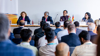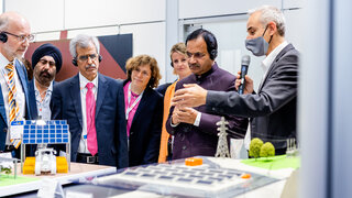 On the occasion of the visit of Hon’ble Minister Shri Bhagwanth Khuba, Indian Ministry of New and Renewable Energy (MNRE), to Germany, the Indo-German Energy Forum Support Office organised a dialogue event on "Latest Developments in India’s Solar Energy and Battery Storage Market”. The event took place on 12 May 2022 in the framework of the largest conference and trade fair for solar energy and battery storage in Europe: The smarter E Europe 2022. Welcome remarks were given by Ms. Stefanie Schmid-Lübbert, Head of Division Bilateral Energy Cooperation, German Federal Ministry for Economic Affairs and Climate Action (BMWK), Smt. Suman Sharma, Managing Director, Solar Energy Corporation of India (SECI), Shri Indu Shekhar Chaturvedi, Hon’ble Secretary, Ministry of New and Renewable Energy and Hon’ble Minister Shri Bhagwanth Khuba, MNRE.