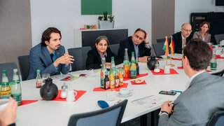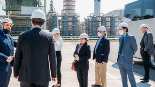 Dr. Vandana Kumar, Additional Secretary, Indian Ministry of New and Renewable Energy (MNRE), led a delegation visit to green hydrogen projects in the chemical park Leuna and the city of Leipzig on 3 May 2022. Dr. Kumar is responsible for solar energy and green hydrogen at the ministry. At the Fraunhofer Centre for Chemical-Biotechnological Processes (CBP) in Leuna, Prof. Dr. Ralph Gottschalg gave a lecture on the centre’s green hydrogen research. The group visited a large-scale electrolyser test field implemented by Fraunhofer and the largest hydrogen compressor in Europe operated by Linde AG. In Leipzig, the group was welcomed to the office of the European Energy Exchange EEX. Discussions were held on the upcoming European green hydrogen trade and upcoming international tenders that will initiate a global market ramp-up. A highlight was the tour of a hydrogen-capable gas turbine in the south of Leipzig. Mr. Thomas Brandenburg, Director of New Business Models at the utility Stadtwerke Leipzig, spoke about the role of green hydrogen for future-oriented centralised electricity generation. Delivering hydrogen to residential homes was found not to be an option for the near future. In the future heat will either be supplied through the direct use of electricity in heat pumps or by making use of the waste heat from the hydrogen turbine being fed into a district heating pipe system.